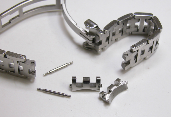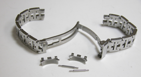 ステンレス無垢バンドに三つ折れバックル。