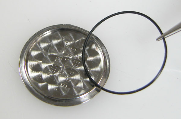 パッキンにシリコン塗布をして裏蓋に戻し。
