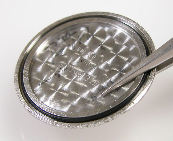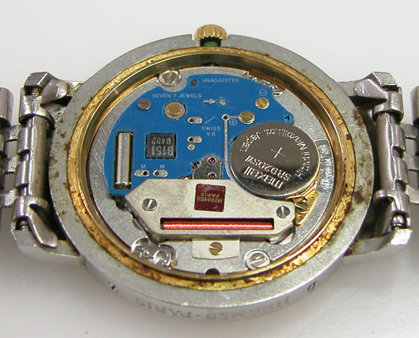綺麗になったケースにムーブメントを戻して電池格納部をチェックします。