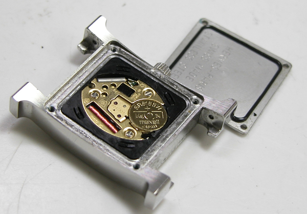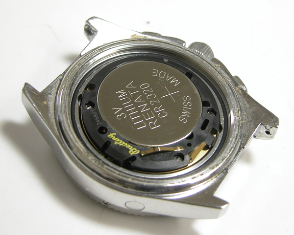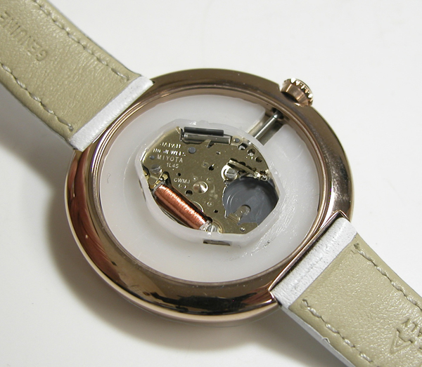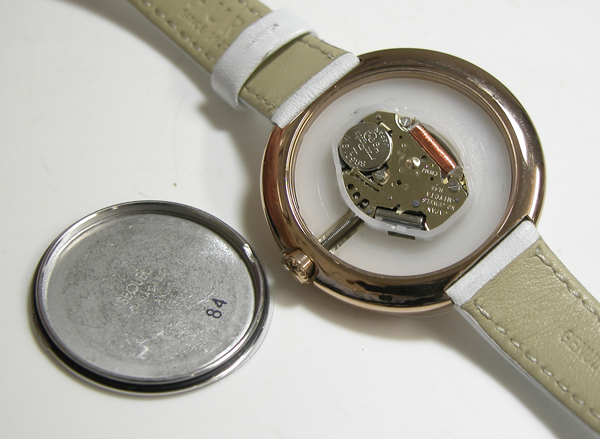 裏蓋を開けると電池がムーブメントを覆っています。