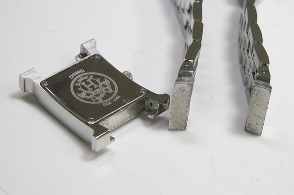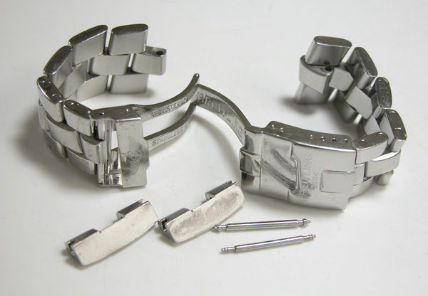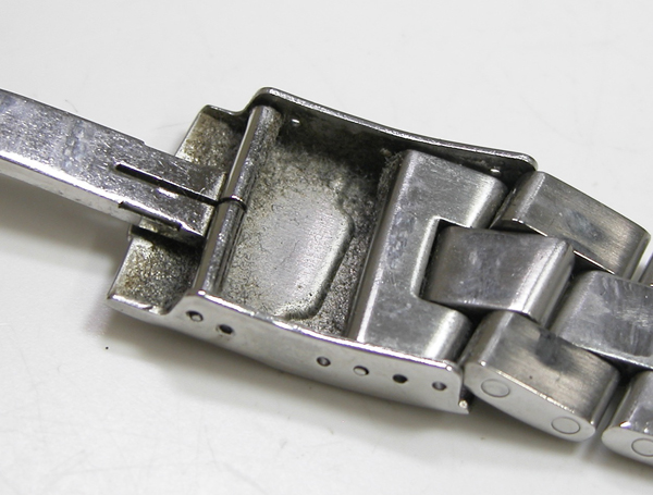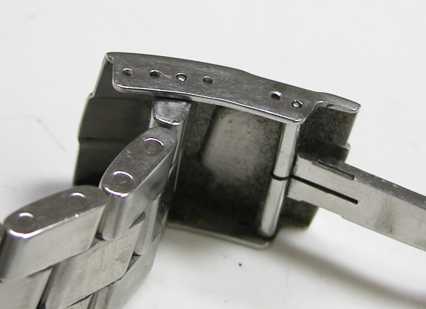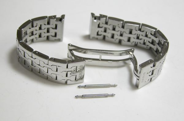 ステンレス無垢バンドに両開きバックル。