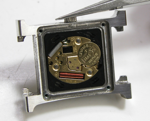 綺麗になったケースにムーブメントを戻して電池格納部をチェックします。