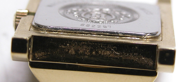 裏蓋は”はめ込みタイプ”で裏蓋記載。固いと言う事でもっとサビとか、裏蓋の変形か?と思っておりましたが意外に綺麗な状態。では何故、固い?