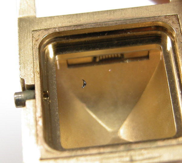 おや?「4時」の位置にゴミが?振ると動きますからガラスの内側です。