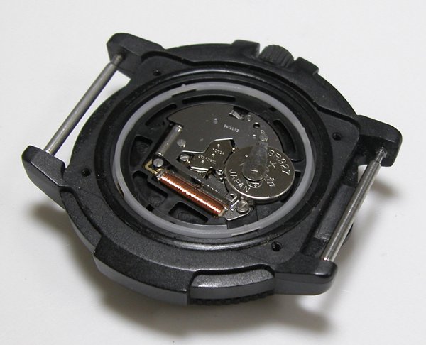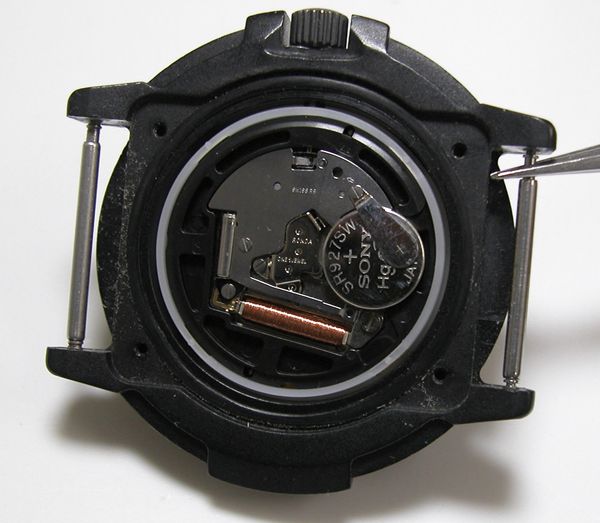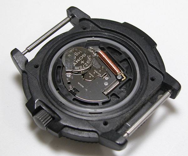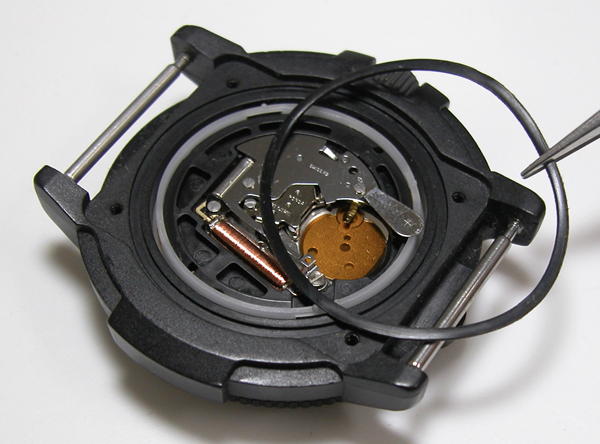 電池を入れて動作確認。パッキンにシリコン塗布をしてケースに戻します。