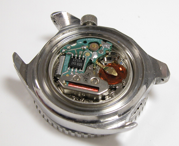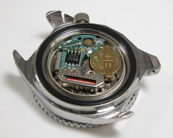 電池を入れて動作確認。パッキンにシリコン塗布をしてケースに戻します。