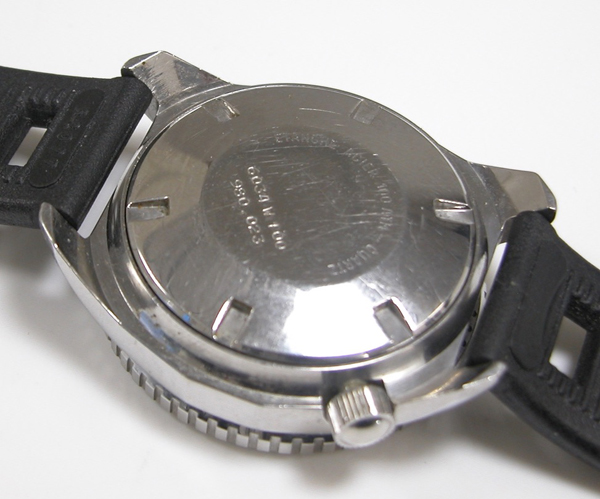 裏蓋はスクリューバックで裏蓋記載。裏蓋の形状も懐かしい感じがします。