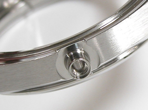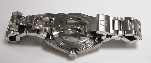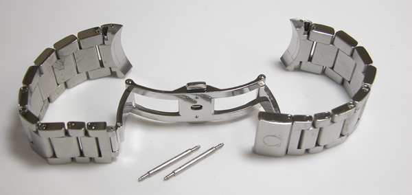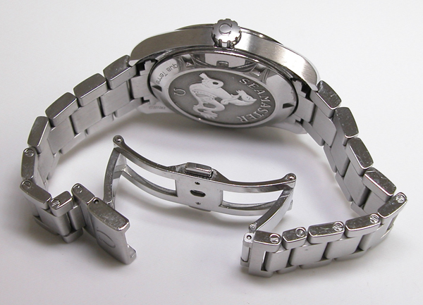 ステンレス無垢バンドに両開きバックル。