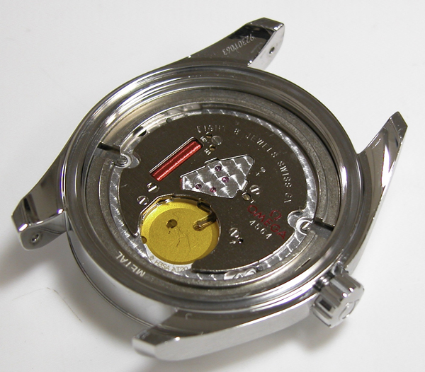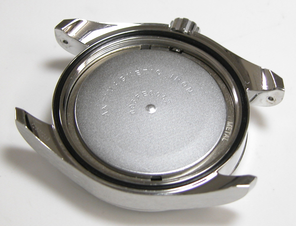 裏蓋を開けると耐磁プレートがムーブメントを覆っています。