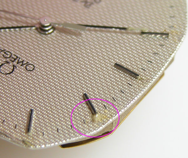 文字盤のインデックスに付着物?と思いましたが。