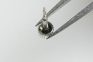 竜頭の動きをチェックして。横のプッシュボタンはおそらく長針をモータードライブさせる為のボタンか?