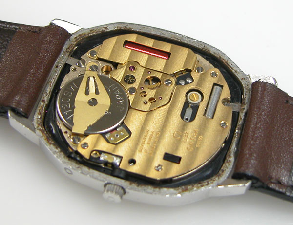 綺麗になったケースにムーブメントを戻して電池格納部をチェックします。