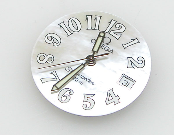 文字盤が「白蝶貝」ですから角度によって色が変わります。