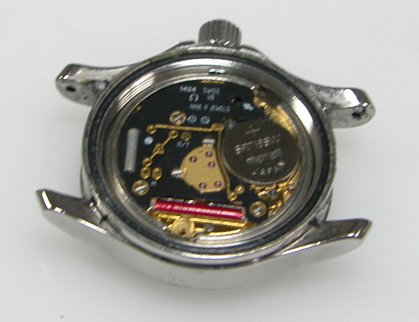 綺麗になったケースにムーブメントを戻して電池格納部をチェックします。