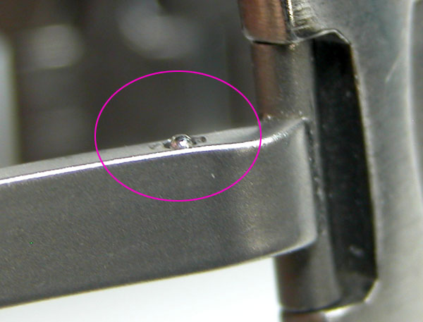 こちら正常な側。○の箇所にベアリングが付いており、おそらくこの下にバネが装着されております。