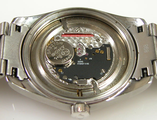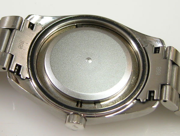 裏蓋を開けると耐磁プレートがムーブメントを覆っています。
