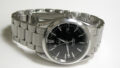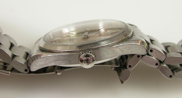 ステンレス無垢バンドに三つ折れプッシュバックル。