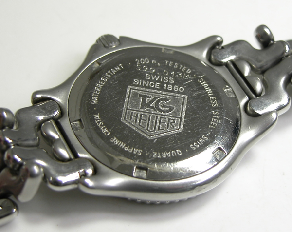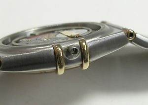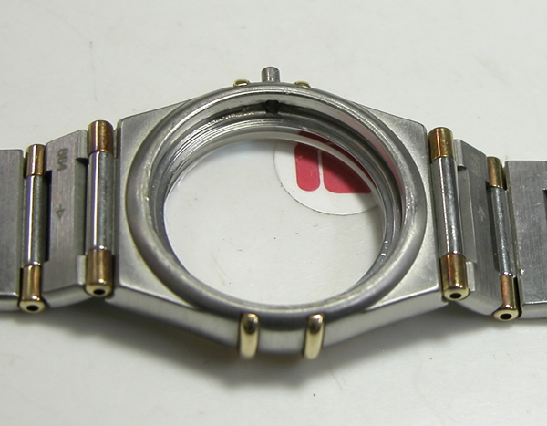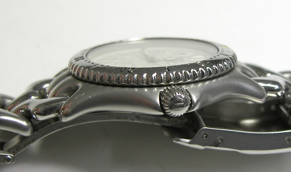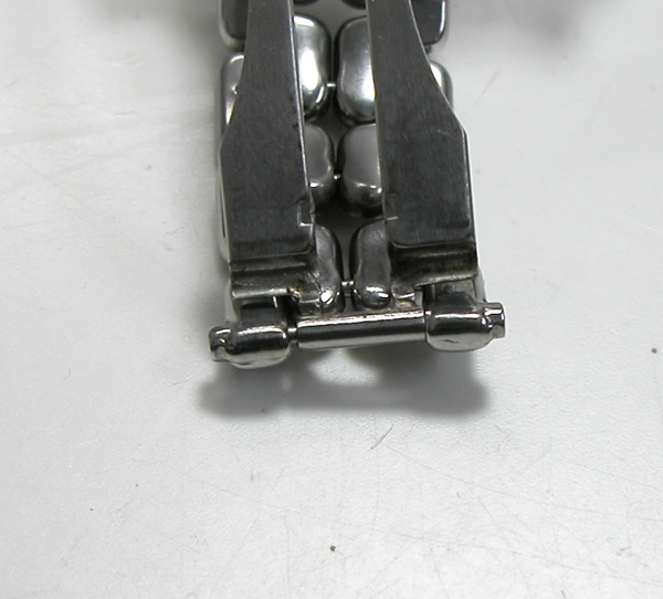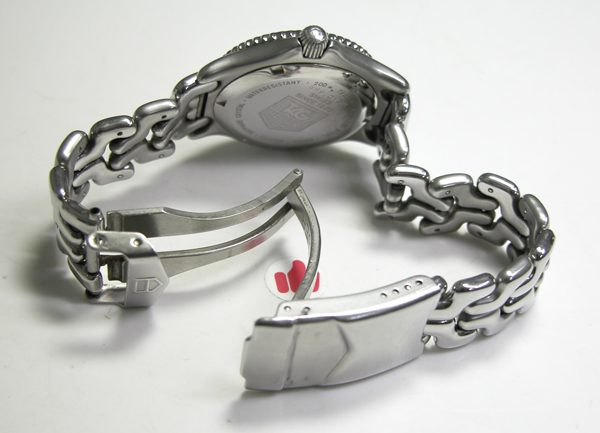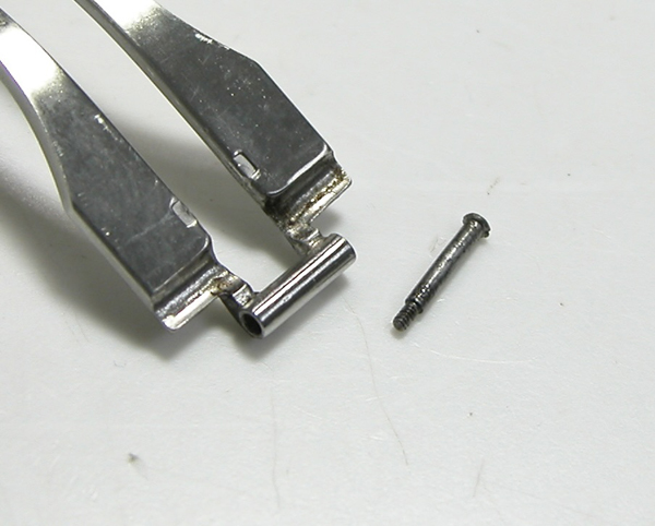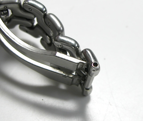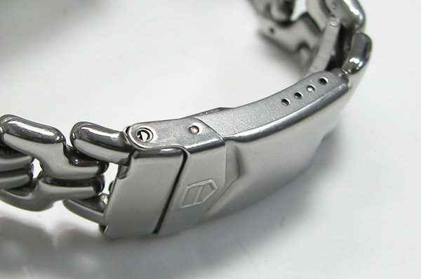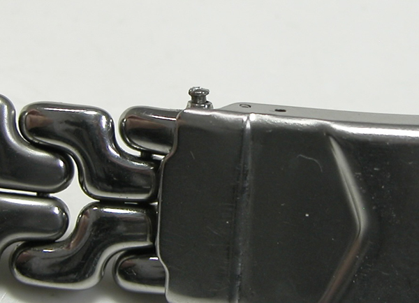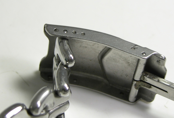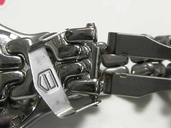 TAG HEUERのバックル、殆どがパイプを貫通させて両サイドからのネジ留めですが。