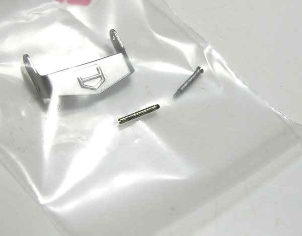 そう言えば「バックルの不具合」もご依頼でした。ダブルロックの押さえを固定するネジを紛失していると。