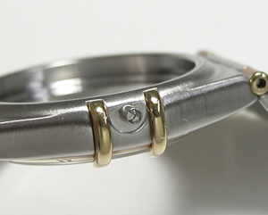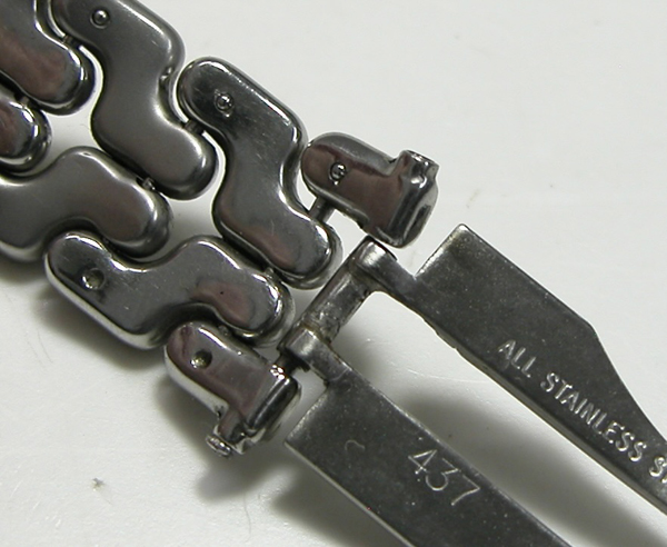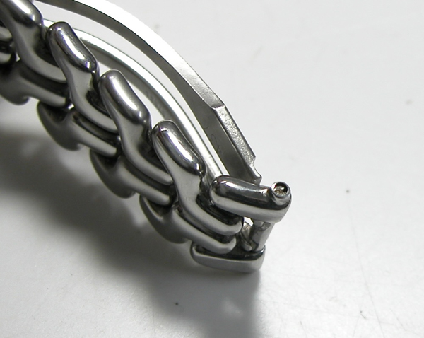 ステンレス無垢バンドに三つ折れプッシュバックル。