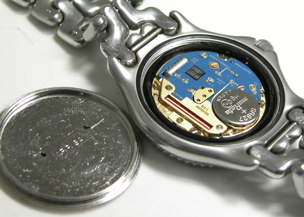 綺麗になったケースにムーブメントを戻して電池格納部をチェックします。
