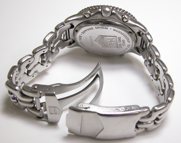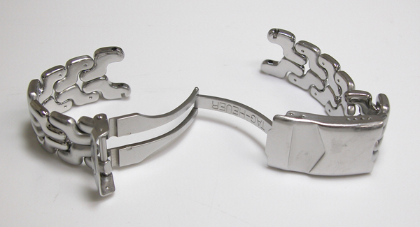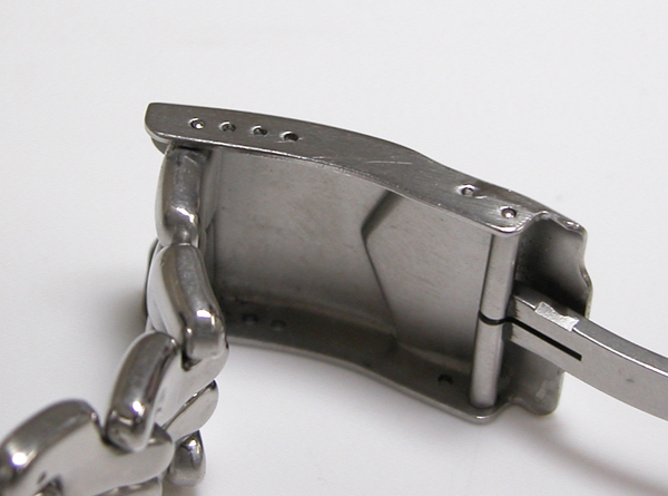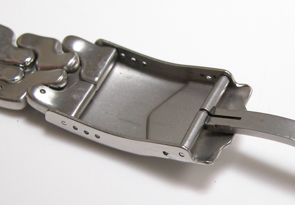 ステンレス無垢バンドに三つ折れダブルロック。