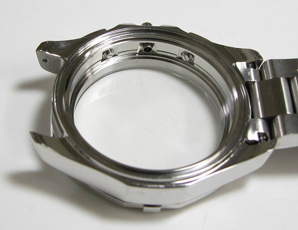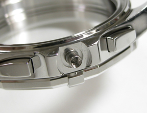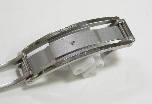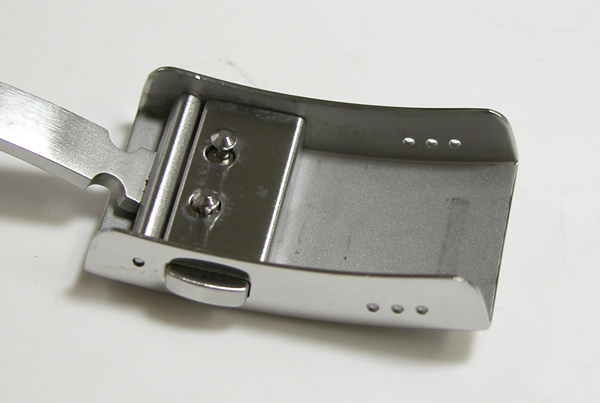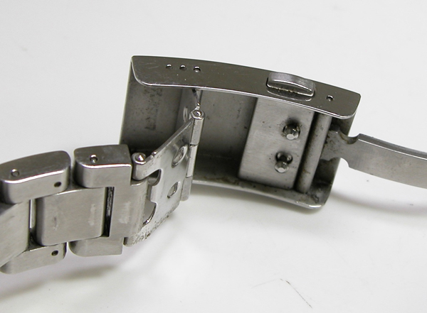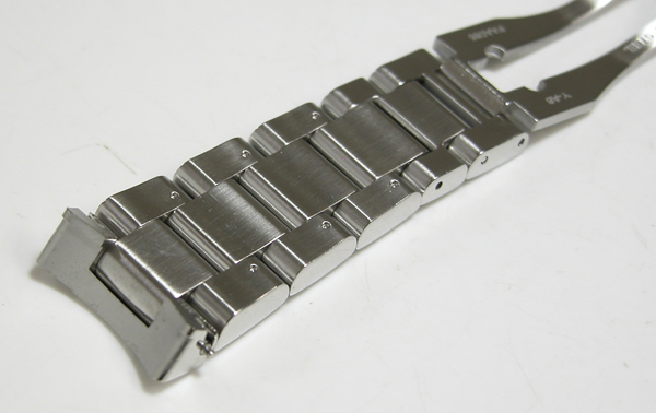 ステンレス無垢バンドに三つ折れプッシュバックル。