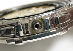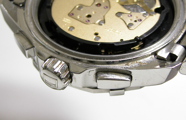 綺麗になったケースにムーブメントを戻して電池格納部をチェックします。