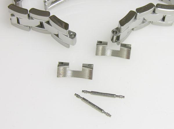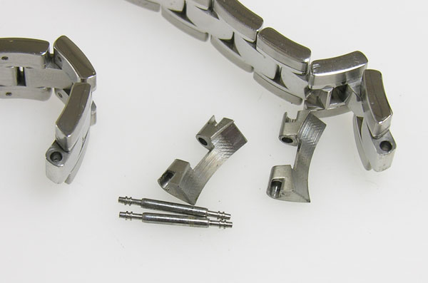 ステンレス無垢バンドに三つ折れプッシュバックル。