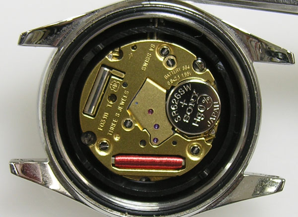 綺麗になったケースにムーブメントを戻して電池格納部をチェックします。