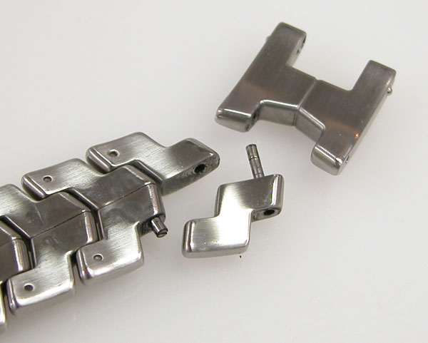 ステンレス無垢バンドに三つ折れダブルロック。