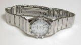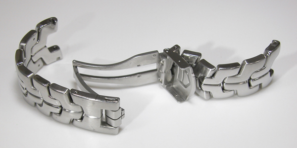ステンレス無垢バンドに三つ折れダブルロック。