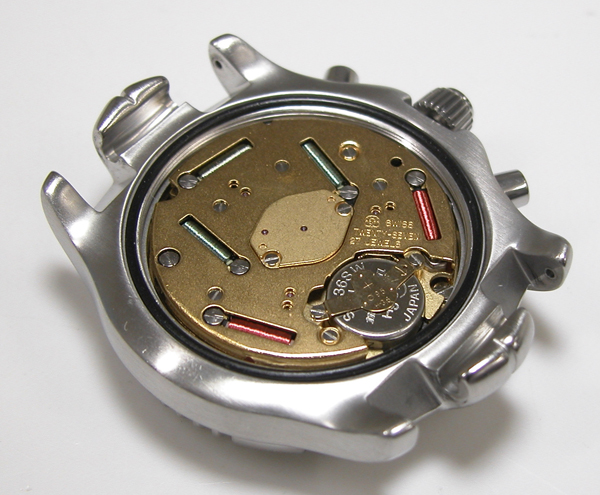 外したパーツを戻していき電池を入れて動作確認。パッキンにシリコン塗布をしてケースに戻します。前回の電池交換から使われた形跡も無くパッキンも非常に綺麗です。