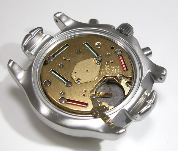 綺麗になったケースにムーブメントを戻して電池格納部をチェックします。