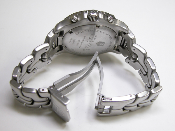 ステンレス無垢バンドに三つ折れダブルロック。