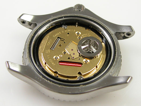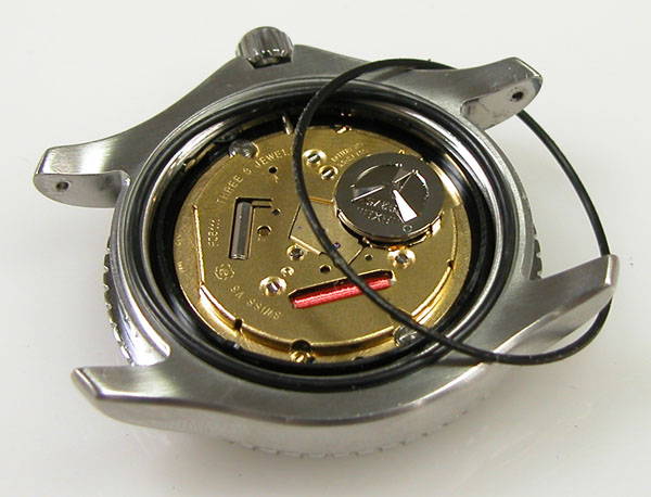 綺麗になったケースにムーブメントを戻して電池格納部をチェックします。