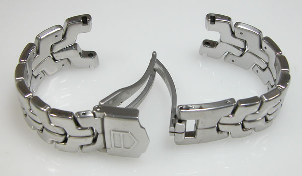 ステンレス無垢バンドに三つ折れダブルロック。