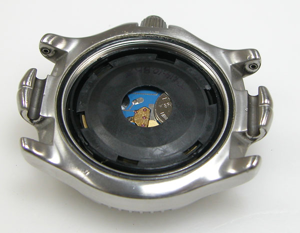 綺麗になったケースにムーブメントを戻して電池格納部をチェックします。