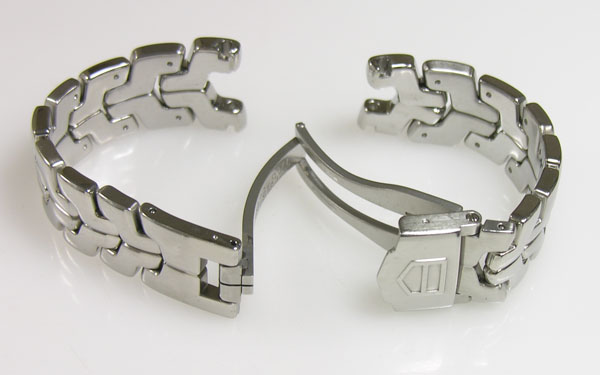 ステンレス無垢バンドに三つ折れダブルロック。