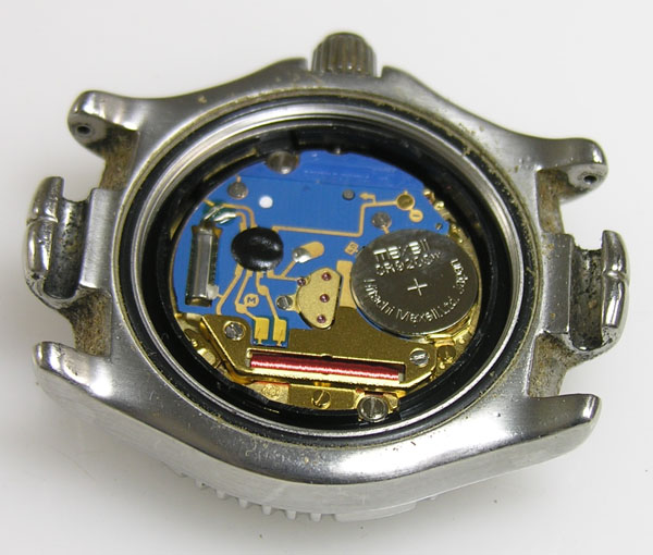 綺麗になったケースにムーブメントを戻して電池格納部をチェックします。