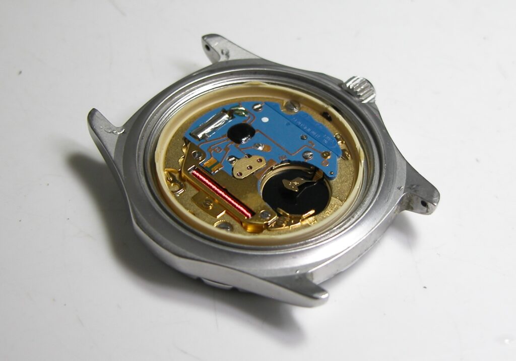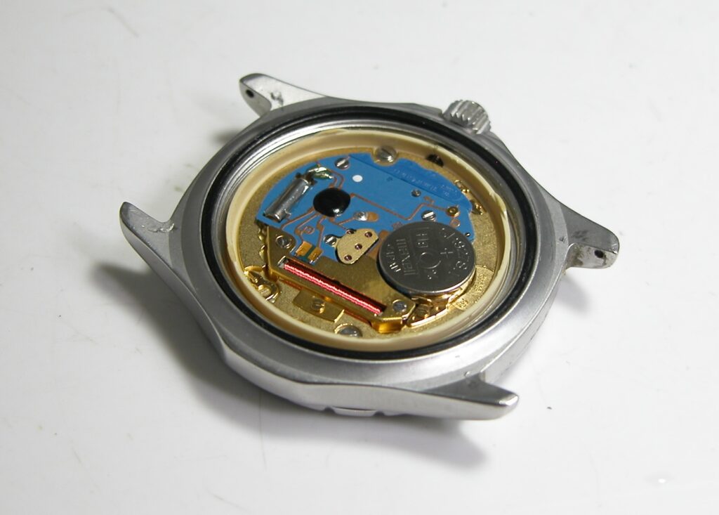 電池を入れて動作確認。パッキンにシリコン塗布をしてケースに戻します。