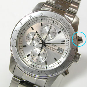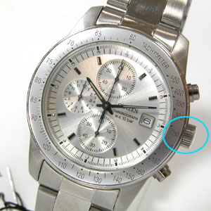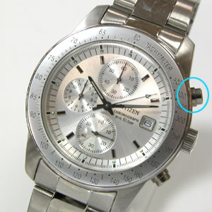 (竜頭とプッシュボタンで合わせるのは、どのクロノグラフでも同じです。)
