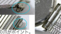 この○の位置からドライバーを差し込んでバネ棒を外します。