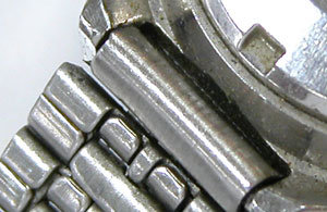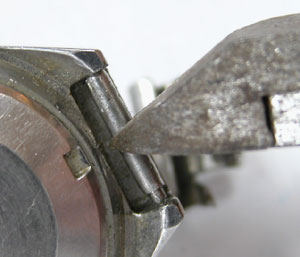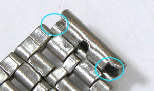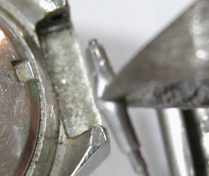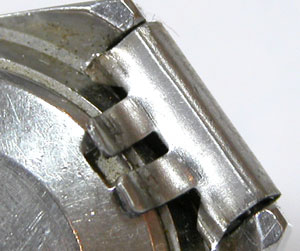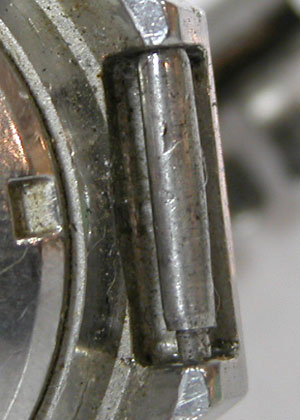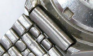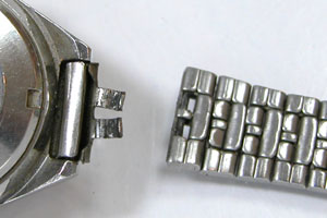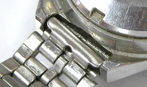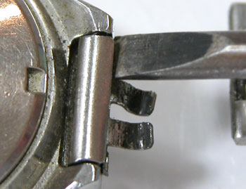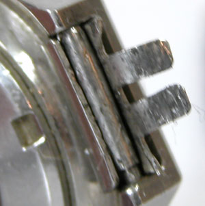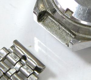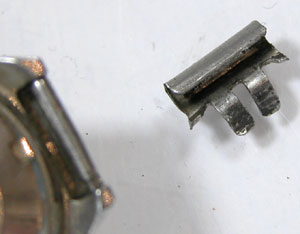 先ずは外しますが取付部を見て驚いた。付いていたのは既製バンド。(写真・右)