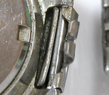 先ずは、ベルトの根本はご覧の様に爪を巻いて留めてあり。