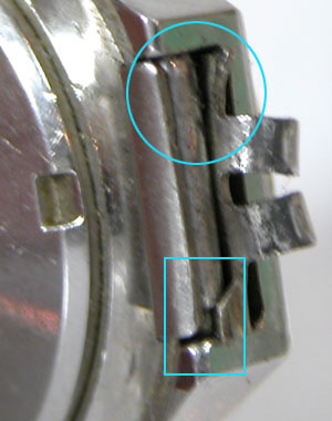 しかし、このバネ棒の形状から前ページのメンズと同じ様に大工ドライバーで