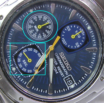 写真の場合「6時位置の小針=秒針」。