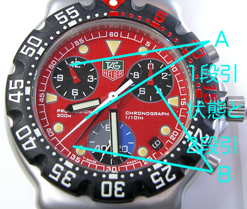 タグ・ホイヤーには「クロノ針4つにボタンも4つ」と言う物もあります。