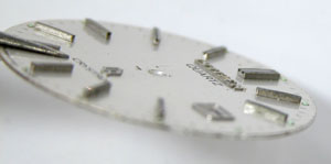 それではシミになりますから後で文字盤表面を「書き直し」(塗装)となります。