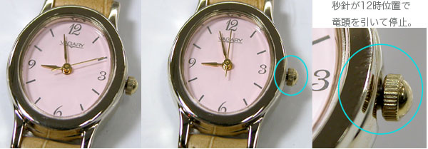 「秒針が12時位置に来るのを待って竜頭を引き出します」。